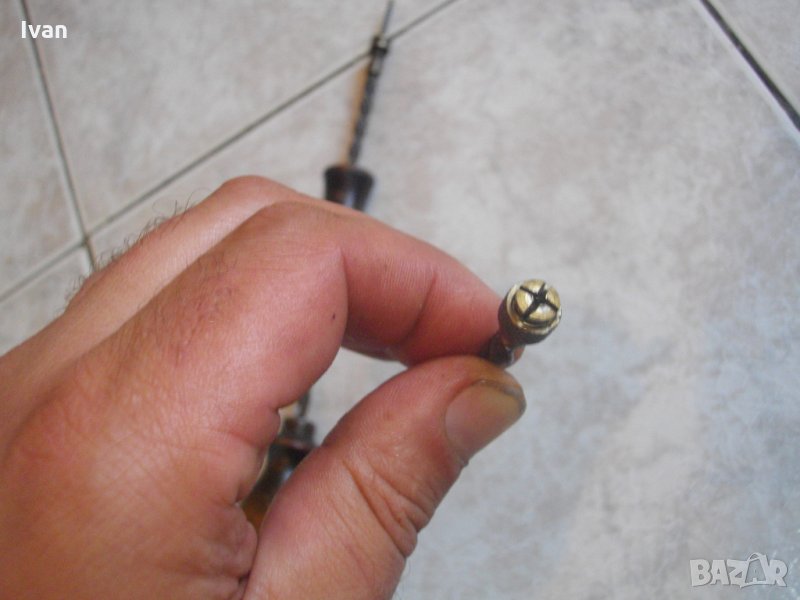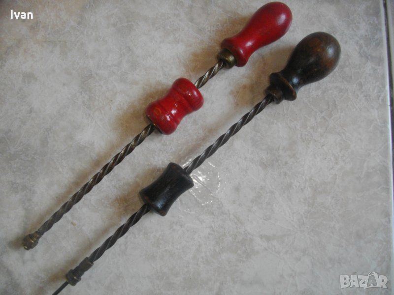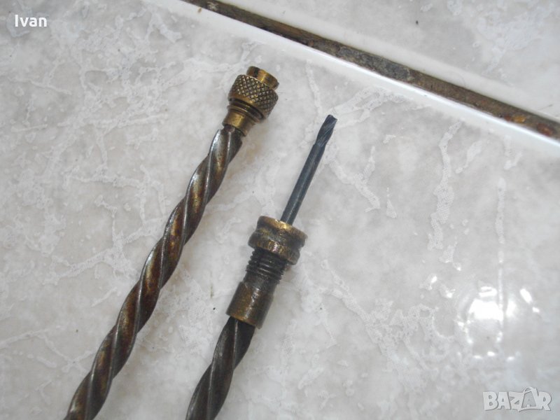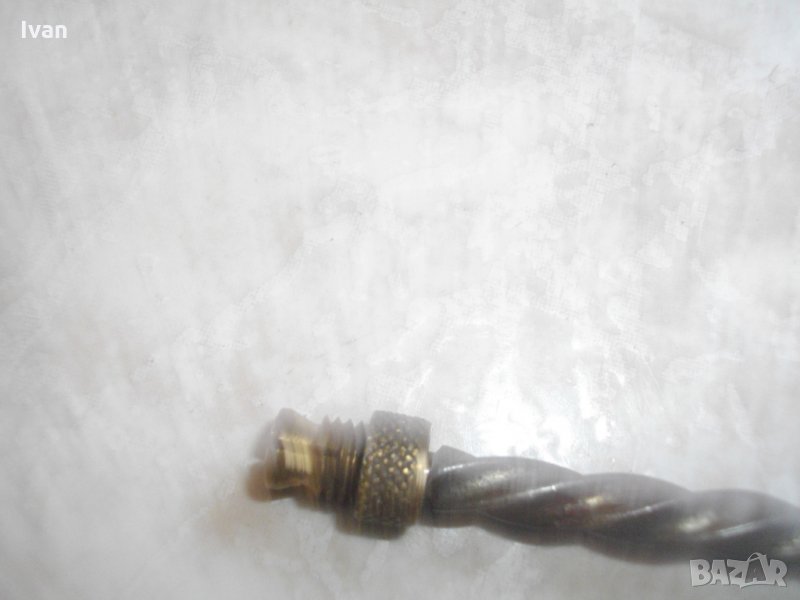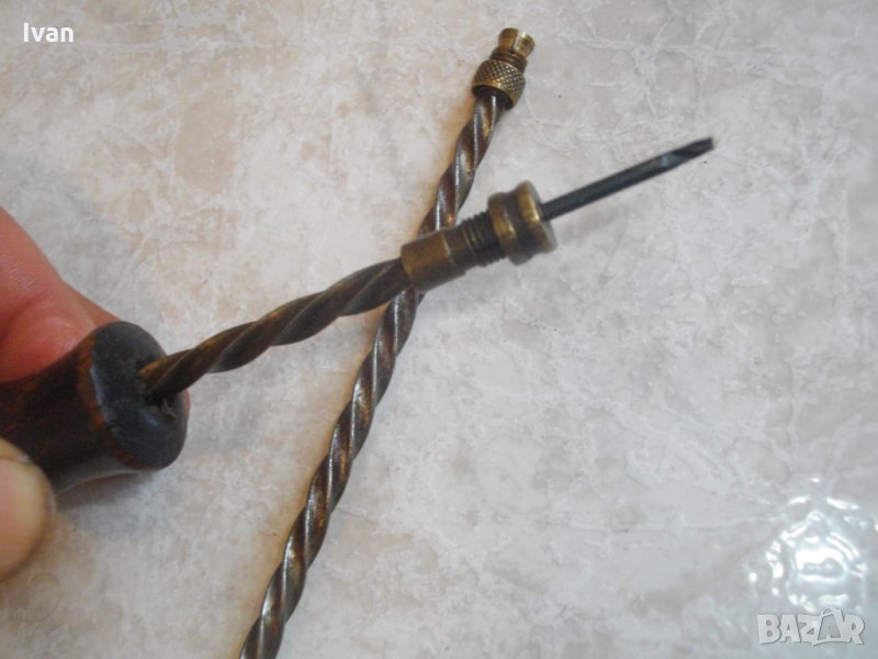 Описание на кафяв инструмент - Ползван. Малък,удобен,ръчен инструмент за пробиване на кожа,гьон,текстил и всякакви меки и полутвърди повърхности.Ръчна автоматична игла-шило-пробой,с приложение в хоби и профи обущарство,дърводелство и други дейности.Инструмента е старо немско качествено производство. В пълна изправност-спускането и повдигането на работният ход работят много леко,лесно,удобно и ефикасно.Цялостна дължина на инструмента-240мм.Цанга-глава за захват-размер ф4мм.Масивна дървена дръжка от буково дърво.Цангата на главата държи здраво,резбите са в изправност,няма луфтове,изпускания,при работа.ЗАБЕЛЕЖКА-към инструмента е поставена къса тънка бургийка, за проба.