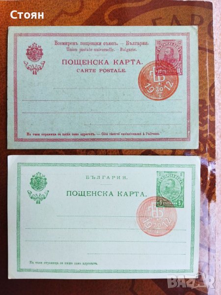 - картичката с таксов знак 5 ст е на зеленикава хартия, тази с таксов знак 10 ст е на синкава хартия.