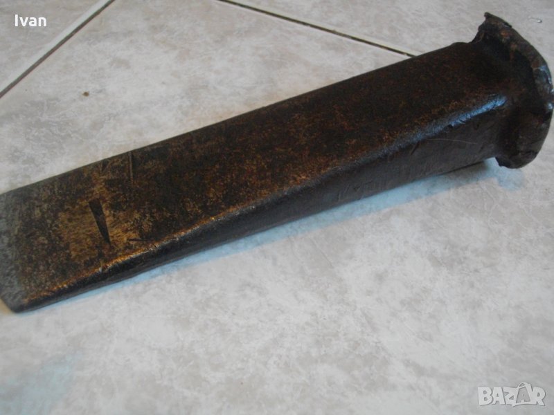 цепене на дърва от старото висококачествено ръчно производство. Старо качество от преди години от ръчно кована стомана от ресор. Немски е инструмента. Ползван, но със запазен външен вид и отлично техн. състояние. Тегло - около 2 кг. Дължина - 220 мм, заточено острие- 10 мм. Странична дебелина в горната част - 365 мм. Маркировка: 9В.