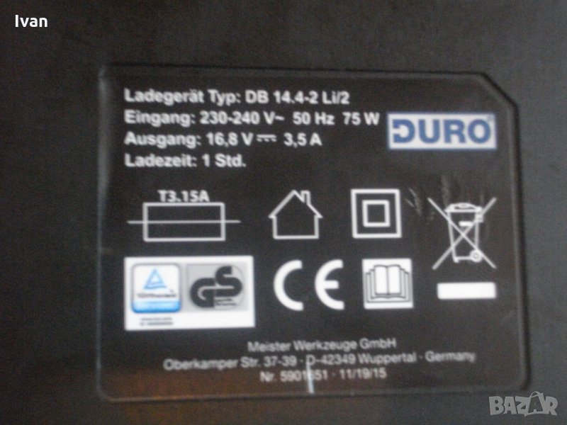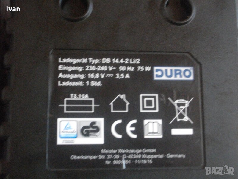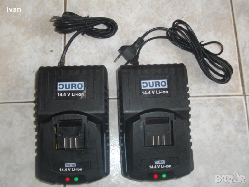 Марка и модел на зарядните - Duro Typ DB 14,4 - 2 Li-2. Производство - оригинално Германия - Germany - виписано на маркировките. Зарядните са съвсем нови, в ОТЛИЧНО техническо и визуално състояние. Работя много добре ,без да загряват. Характеристики: