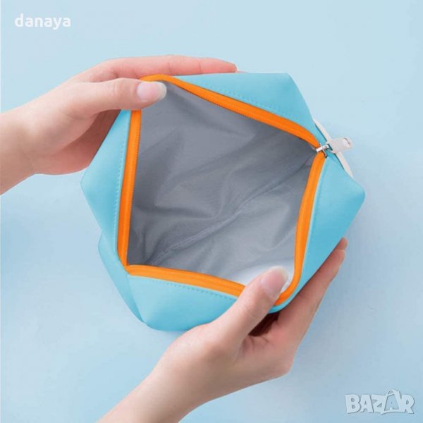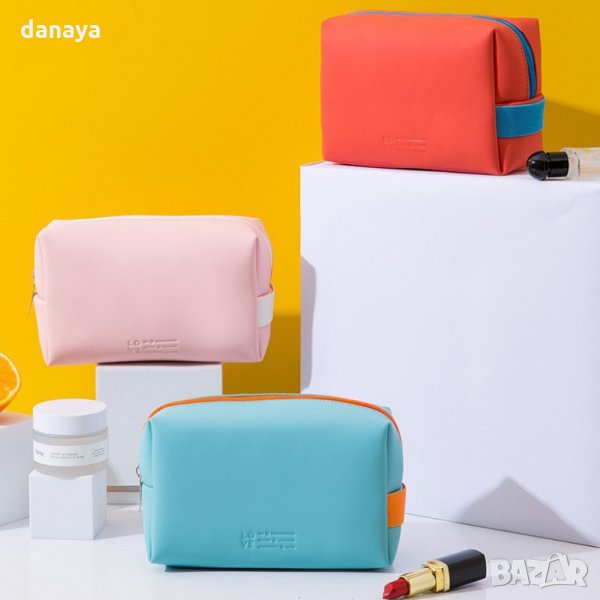 Малка козметична чантичка за гримове и козметика с широко приложение. Чантичката може да се използва и като ученически несесер за моливи и химикали. Може да се използва и като портмоне, като мини органайзер за дребни аксесоари и т.н. Гумирана повърхност, непозволяваща намокряне на вещите отвътре. Вътрешната част има малко странично джобче. Затваряне с цип. Предлага се в различни цветове.