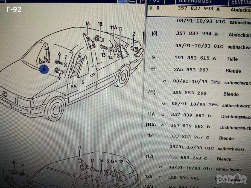 357837993A01C**NEU**VAG**PASSAT**1988-1993**Покрийте ляво вътрешно отпред