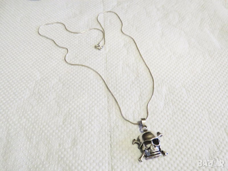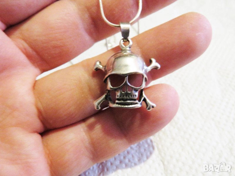 Старинен сребърен медальон ЧЕРЕП и сребърно синджирче - за ценители, рокери и моторджий - Внос от Щатите.