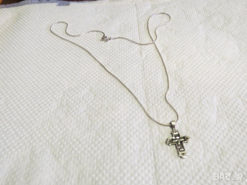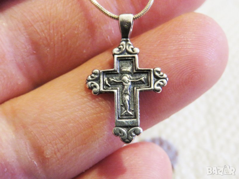 Красив Старинен сребърен православен кръст с Исус на гърба Света Богородица и сребърно синджирче - притежавайте този медальон и нека божията сила ви пази и закриля