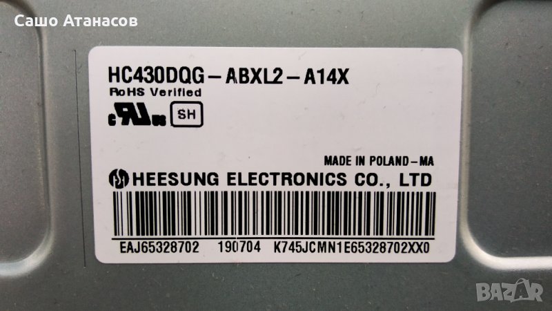 LG 43UM7390PLC със счупена матрица ,LGP43T-19U1 ,EAX68253604(1.0) ,NC430DQG-ABXL2-A14X ,TWCM-K505D