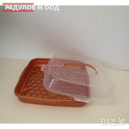 Декоративен правоъгълен контейнер за транспортиране и съхранение на храни. Осигурява лесно използване благодарение на заключения капак. Може да се носи лесно благодарение на дръжката за носене. Произвежда се от суровина, съвместима с храни. Лесно се побира във вашите стъклени съдове за фурна и осигурява лесен транспорт.