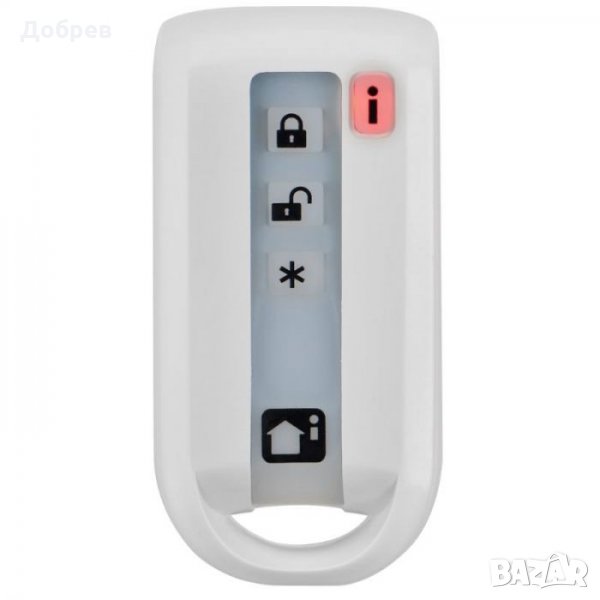 Безжично дистанционно с двупосочна комуникация и 4 бутона, включена батерия 1x3V/550-600 mAh CR2450, до 3 години живот на батерията. В съответствие със стандарт EN50131, GRADE 2