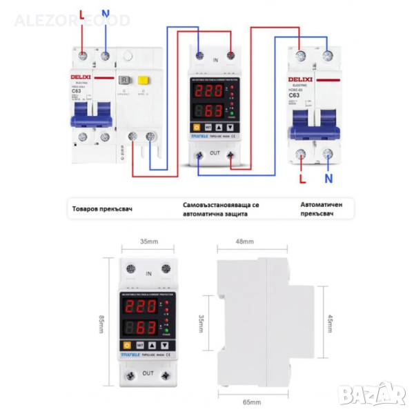 Диапазон на стойността на защита от пренапрежение: 230V ~ 300 ~ OFF (по подразбиране: 270V)