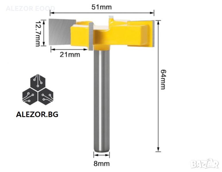 Фрезер със захват 8 mm подходящ за изравняване на плотове. Работен диаметър 51 mm 4 рабтни ръба за по - гладко фрезоване и дълъг експлоатационен живот.