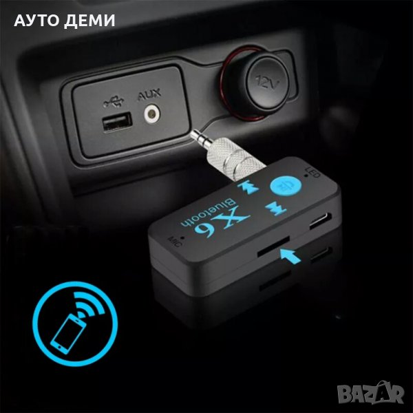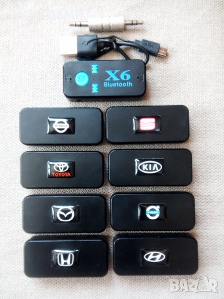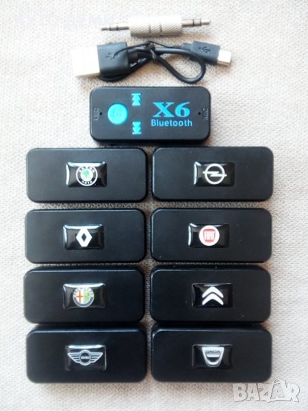 Цена за 1 брой блутут 5.0 аукс адаптер със слот за карта памет и емблема на марка автомобил - 9 лв .