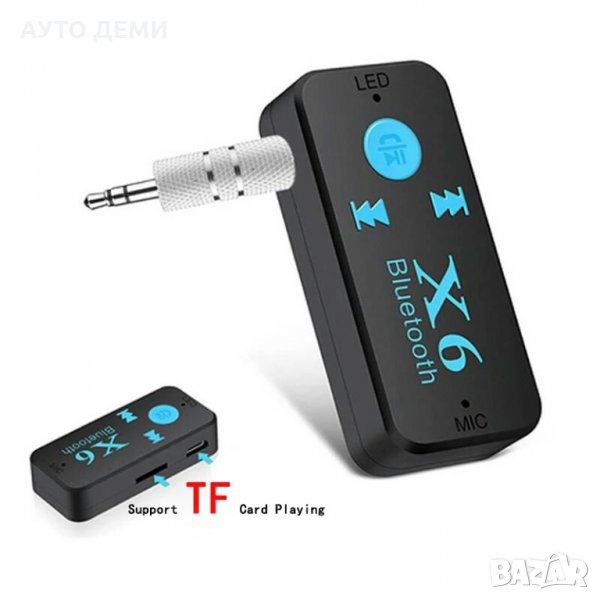 Цена за 1 брои Bluetooth 5.0 Aux adapter със слот за микро СД карта памет , УСБ кабел за зареждане на батерията и 3.5 мм метален жак - 8 лв.