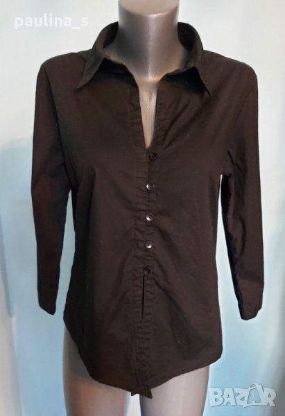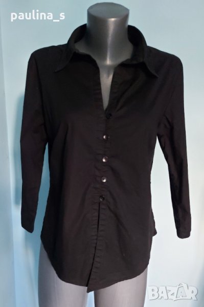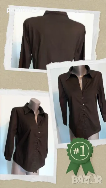 1️⃣ . Колаж / L / 2XL - "Basic" concept. Цената е крайна 10 евро. Еластична брандова риза с издължена предна част, материята е органичен памук и ликра. Моделът е втален с прихлупено закопчаване и дълбоко деколте. Ръкавите са 7/8. Безупречна и елегантна, бонбонска риза. Като нова, без дефекти и етикет.