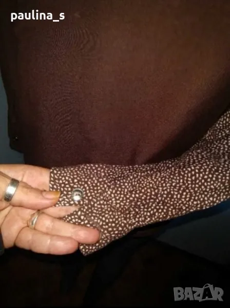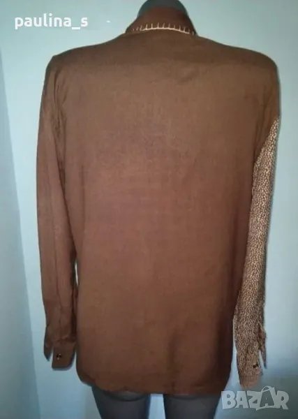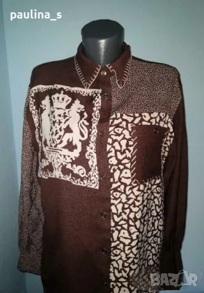 2️⃣ . Колаж L / XL / Декорирана риза "Basics". Цената е крайна 9 евро. Декорирана риза с падащи рамене. Мултиколър пачуърк. Материята е памук и вискоза, мека и приятна за носене на голо. Не е нова, но е без дефекти.