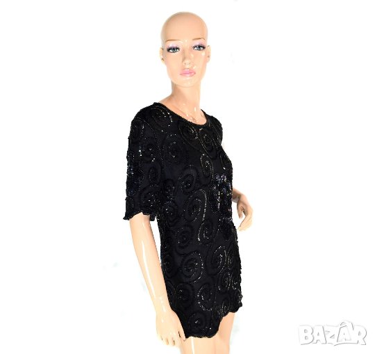 Ribbel дамска копринена черна блуза с пайети 100% коприна → Обява 33329046