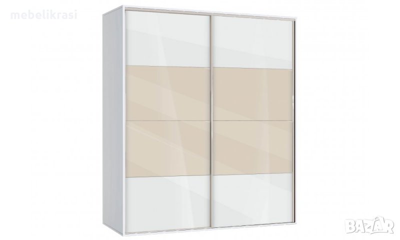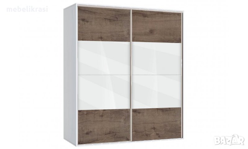 Гардероб "Ава 5" разполага с две плъзгащи врати и вътрешно разпределение - два лоста за дрехи и множество рафтове. Изработва се с цвят за корпус бяло,венге и сонома. и варианти лице: бяло гланц, сиво гланц, антик, крем гланц или орех.