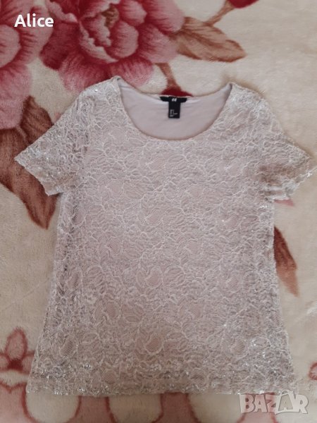 Дамска блуза на "НМ", размер S. Поръчах я по интернет, но се указа че не е моят размер. Много е красива, има сребриста нишка, с черен панталон стои перфектно. Цена 10 лв.