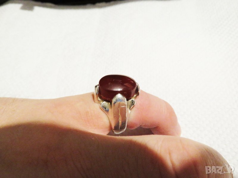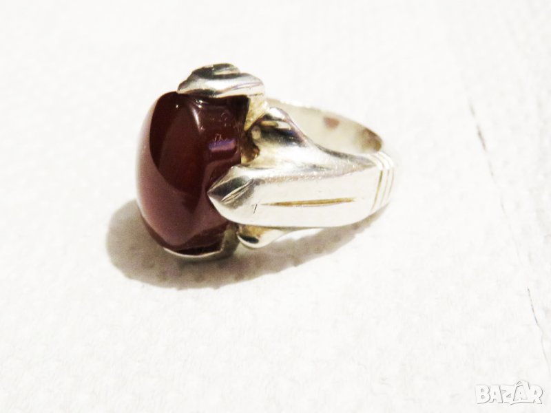 Старинен солиден красив мъжки сребърен пръстен с голям красив камък карнеол - Събуди страстта сребро