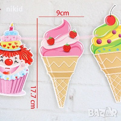Сладолед Сладоледи фунийки банер картонен на въже декор украса за парти рожден ден → Обява 33336117