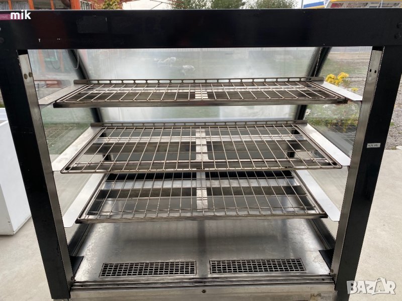 Топла витрина с термостат, поддържат до 50 градуса. Общ обем 500 литра. Монофазна. Размери 145в/ 100ш/ 75д. Размери на стъклената част - 80в/75д/100ш. Много запазен външен вид. Оригинални етажерки.. Без ръжди. Закупена от Германия. Произведена 2014 година.