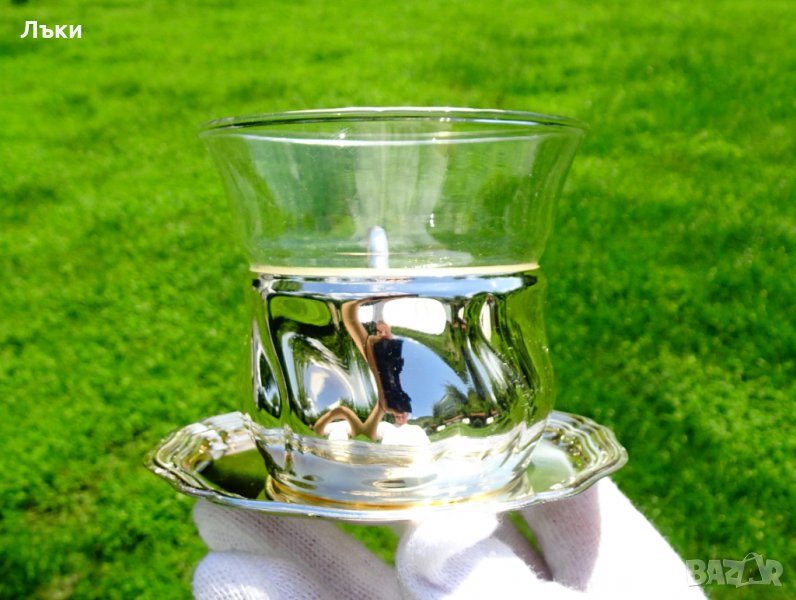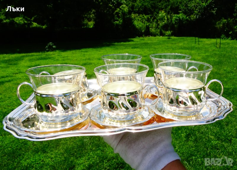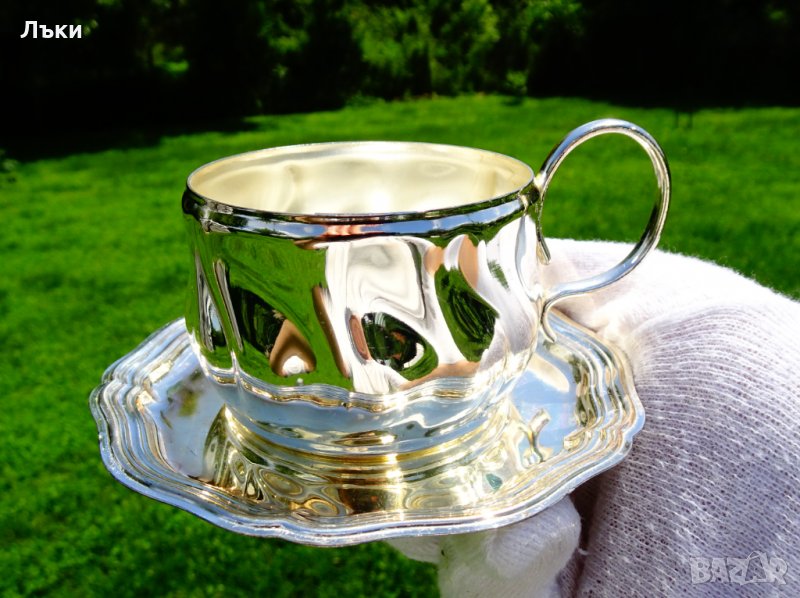 месинг,дебело посребрени с висока проба сребро.Декорирани с нежен релеф.Безкомпромисно качество с огледален блясък.