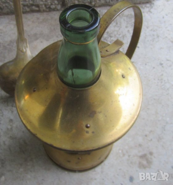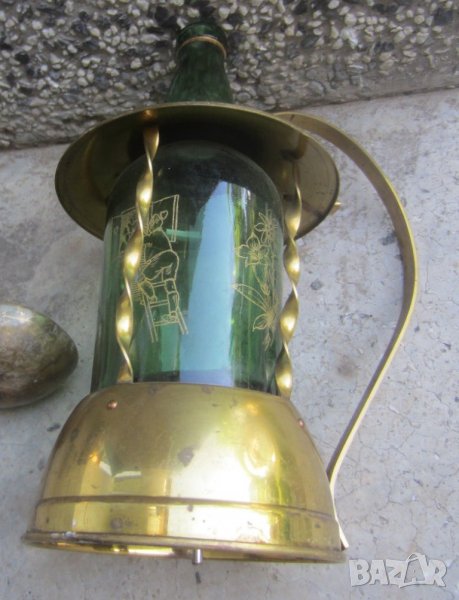 Музикална бутилка, месинг и стъкло, чукало за врата,шише, дамаджана, антика, бутилки → Обява 33342082