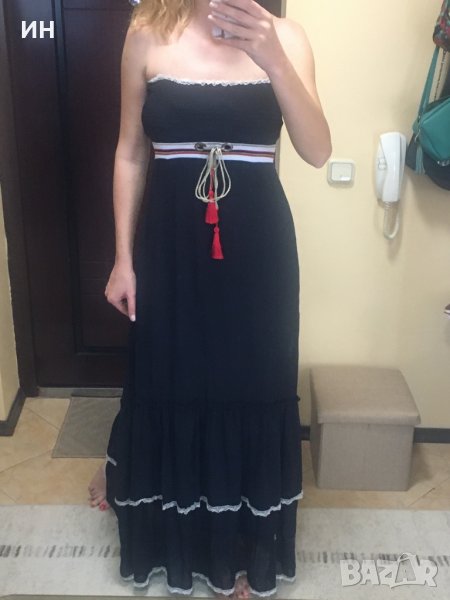 Продавам лятна рокля без презрамки, в тъмносньо, без забележки. Пада нежно и има подплата. Не прозира.