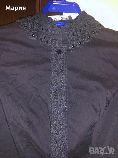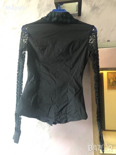 Тъмно-синя риза Madness , размер XS, с камъчета и дантела.