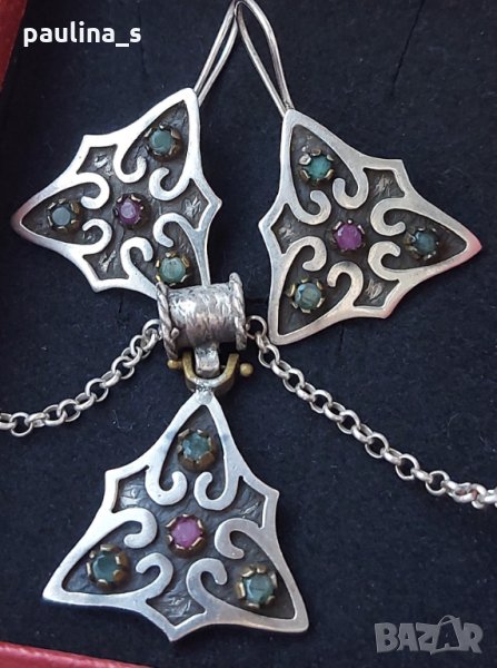 Винтидж / Сребърен комплект с изумруди и рубини / проба 925