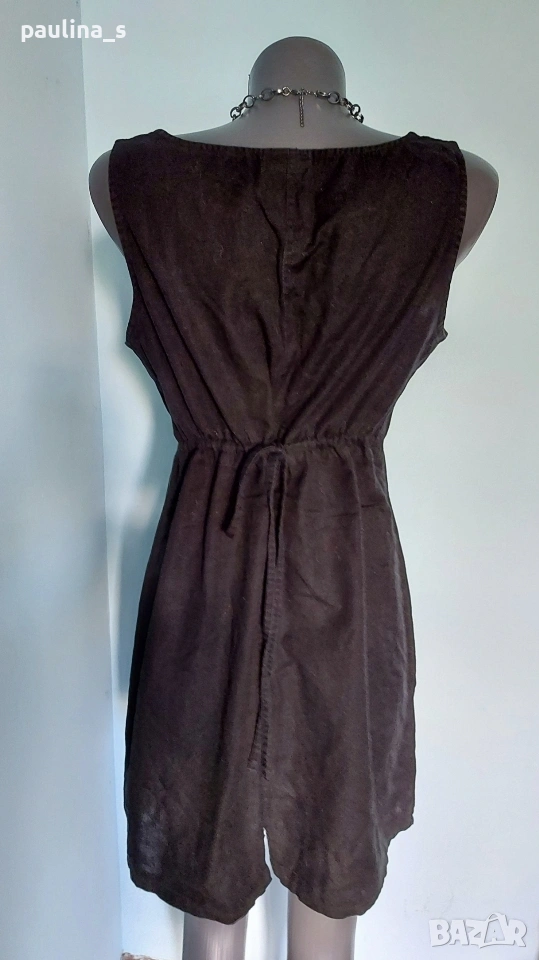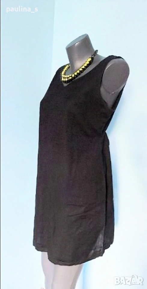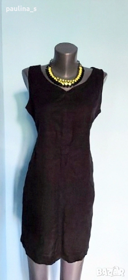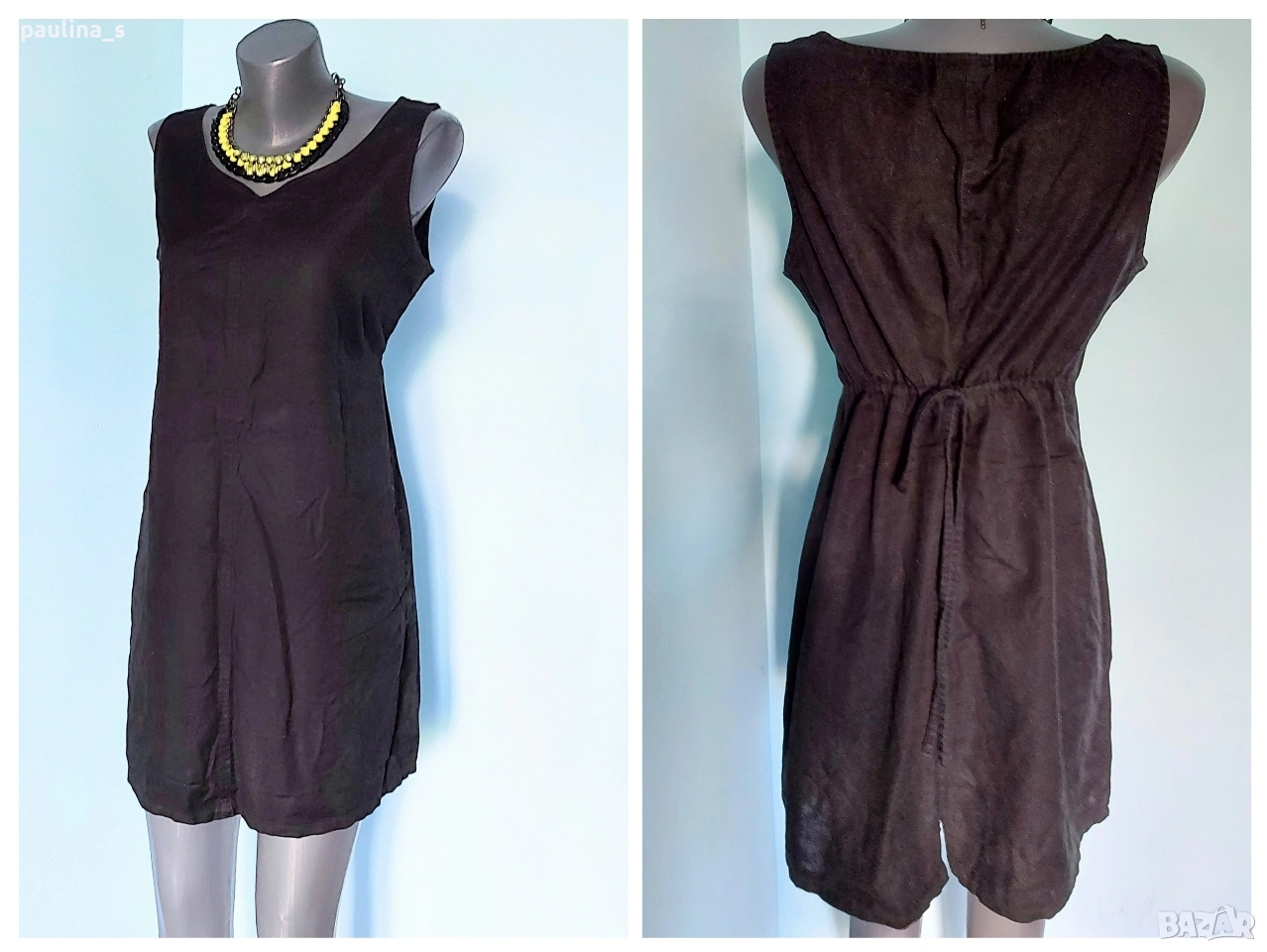 1️⃣. L / XL - "Jessica". Цената е крайна, без пазарлъци 11,5 евро. Черна рокля тип туника или сукман, с красиво деколте. Силуетът е леко втален, отзад се регулира с вграден колан. Джобовете са вътрешни, много добре са изработени филетки, двойните тегели и филетките. Отзад има цепка. Дрехата е много изискана и непретенциозна, може да се носи и като туника върху панталон или сукман върху блуза. Материята е 85%памук и 15%лен, без еластичност, скъпа и хипоалергична!
