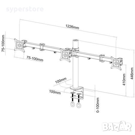 Универсална стойка за 3 Монитора SBOX LCD-352/3 За монтаж на плот, бюро или др. → Обява 33344873