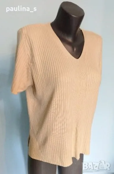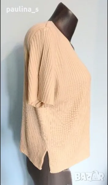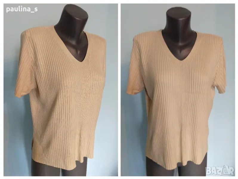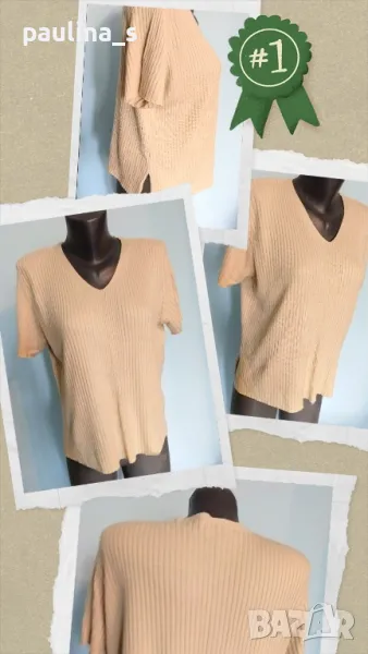 4. Колаж / XL / 4XL. Цвят Nude / екрю цвят блуза с къс, тип тениска или туника. Цената е крайна 14,99лв. Много мекичка блуза тип туника в екрю. Материята е еластична и покрива няколко размера, много приятна за носене на голо, вискоза и памук. Една бройка, без дефекти.