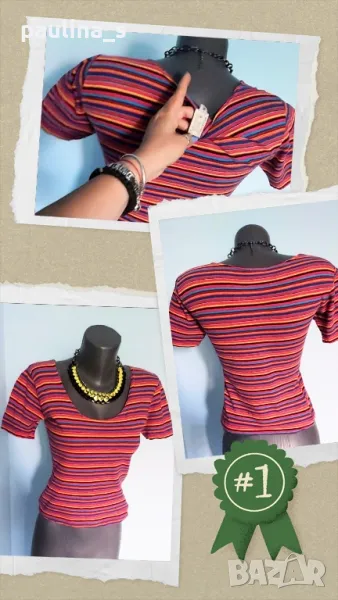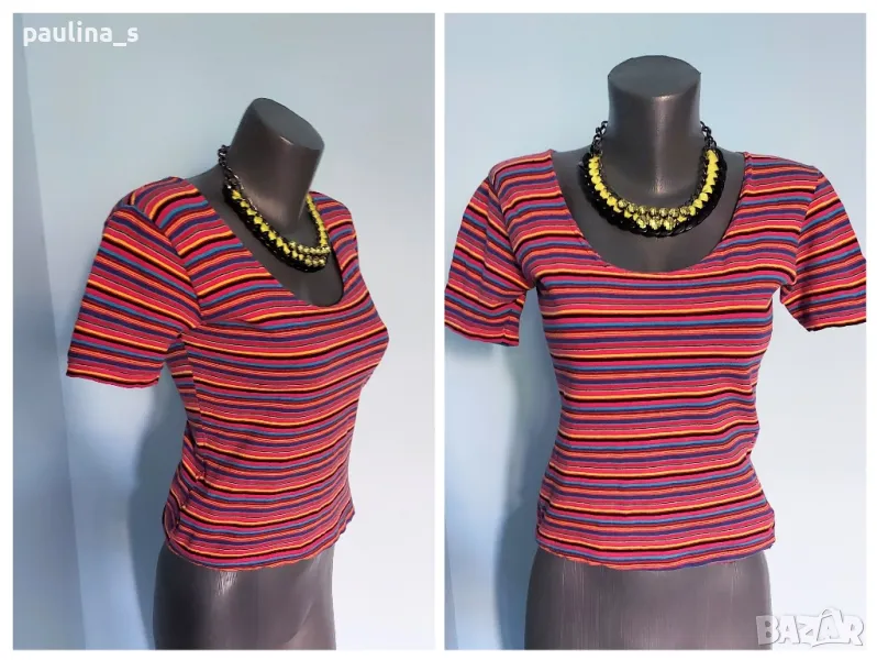 2. Колаж / M / 2XL - Еластична памучна блуза тип тениска "H&M". Цената е крайна 9,99лв. Еластична брандова блуза тип тениска във весел принт. Материята е памук и ликра. Колието е на "Bershka", продава се отделно в друга моя обява 29,99лв. Поради голямата еластичност може да се носи от няколко размера. Класика в жанра.