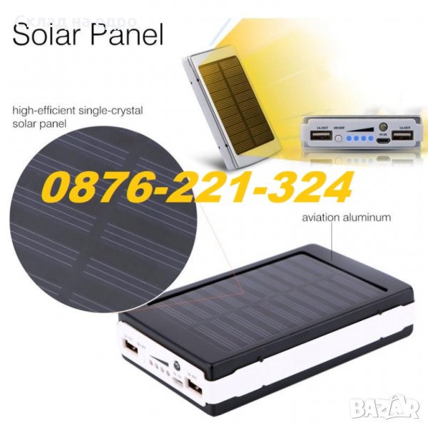 Мощна Соларна Батерия LED ЛЕД Прожектор Фенер за телефон Power Bank