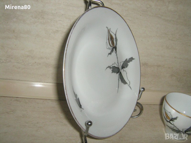 Троен сет черна роза - костен порцелан !