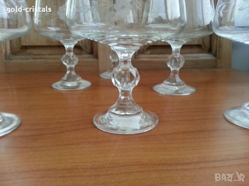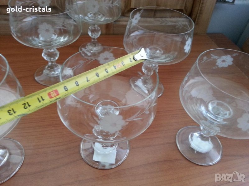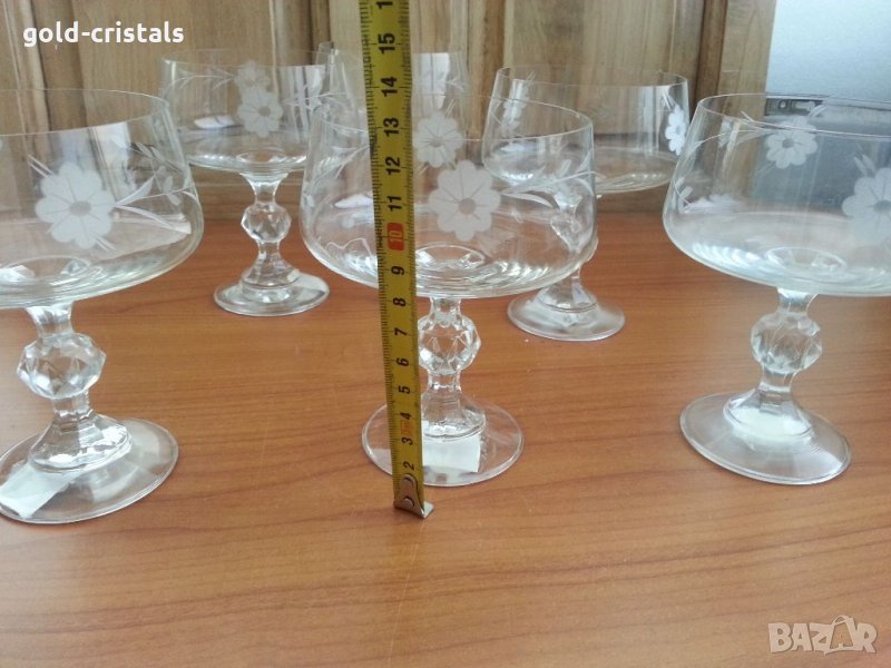 Стари кристални чаши с гравюра 6 бр чисто нови с етикети същите но без гравюра 6 бр-59лв с нежен звън сервиз комплект сет лот ретро арт декор винтидж колекция старинни антикварни предмети обзавеждане за дома и семейството подходящи за подарък за ценители и колекционери