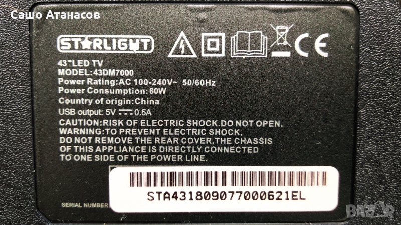 Модули от телевизор STARLIGHT 43DM7000 със счупена матрица (панел CX430DLEDM LE-4318N )