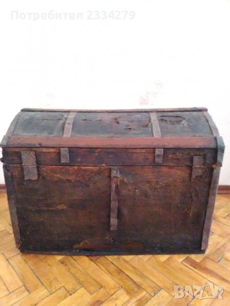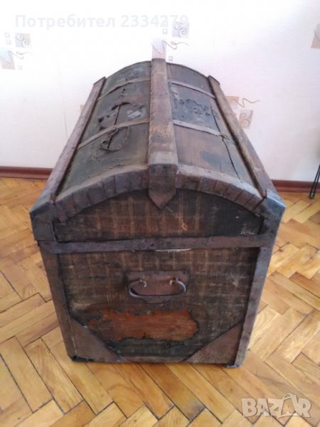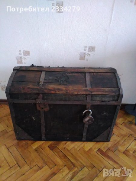 Стара дървена ракла,ръчно изработена от дърво и обкована с железни ленти. 100% автентична изработка с размери:73х43см.,височина 57см. В миналото е използвана за писма и военна поща към влакове, кораби и други превози. Катинара не е в цената, не е наличен!!!