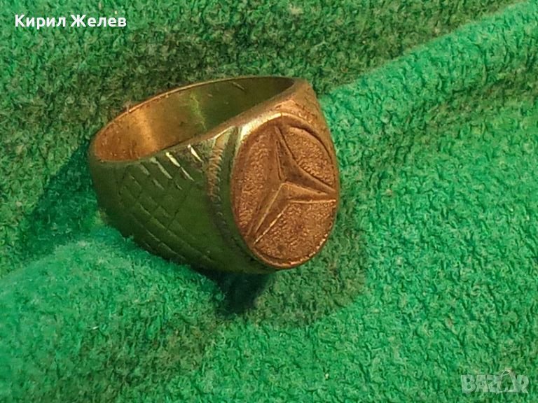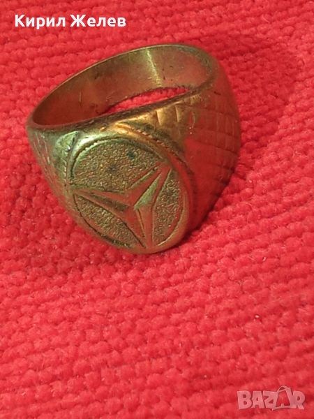 Пръстен с ЕМБЛЕМА на МЕРЦЕДЕС стар бронзов ПОЗЛАТЕН РЪЧНА ВИНТИДЖ ИЗРАБОТКА 72381