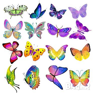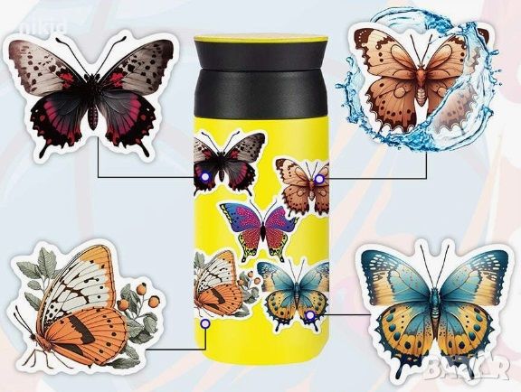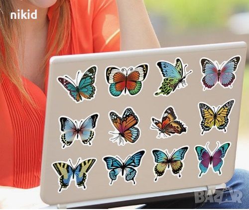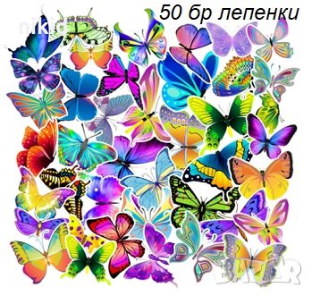 50 бр Пеперуди самозалепващи лепенки стикери за украса декор картонена торта и др → Обява 33376239