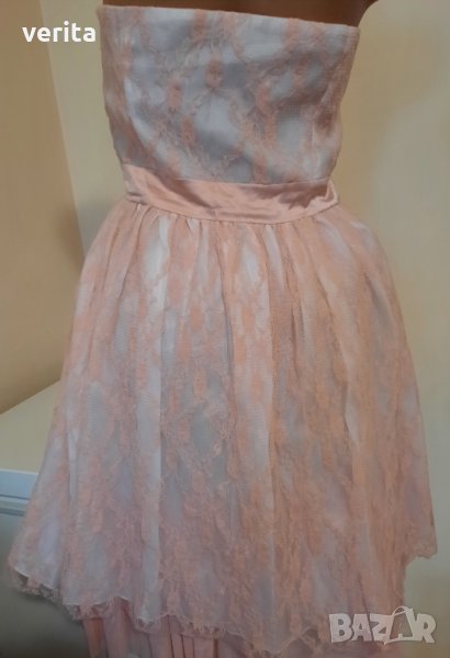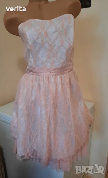 Нежна рокля в бяло и розова дантела, размер С, М.