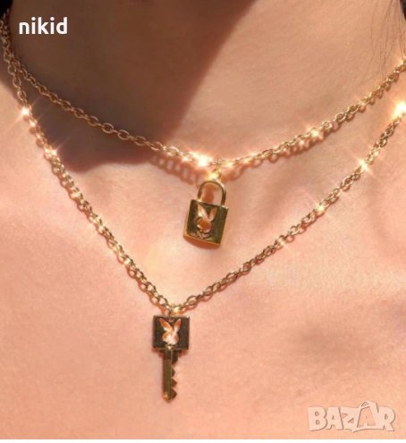 playboy Плейбой златисто колие синджир с висулка заек зайче катинар ключ