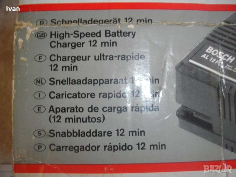 Модел на зярядното - Bosch AL 12 FC. Характеристики - 5, 8 ампера, 140 вата, за батерии от 4,8 волта до 14,4 волта на Бош, никел - кадмий елементи ,стандартните.