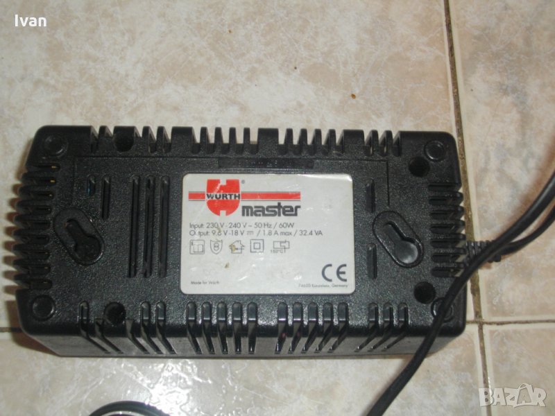 1,8 амперово силно и мощно бързо зарядно за акумулаторни батерии,тип шейна,клик-клик на Вюрт,Бош,Спит,с волтаж от 9,6 до 18 волта.Зарядното е немско оригинално производство. Марка и модел-