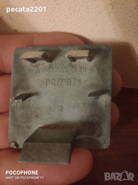 Продавам - оригинално капаче теглич за задна броня на Мерцедес Ц класа Елеганс (Mercedes C class W203 Elegans) 2001-2005 г. Като цяло капачката е здрава, зелена на цвят,липсва само удължението което се захваща към бронята, когато е свалено капачето да не падне. Оригиналния номер е 2038850126. Цена - 18 лв.