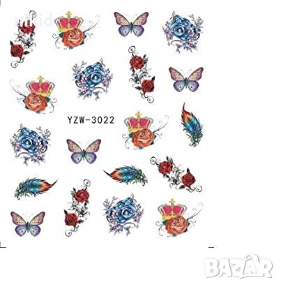 YZW-3022 корона роза пера пеперуда слайдер ваденки водни стикери за нокти маникюр, снимка 1 - Продукти за маникюр - 33384077 YZW-3022 корона роза пера пеперуда слайдер ваденки водни стикери за нокти маникюр, снимка 2 - Продукти за маникюр - 33384077 1/2