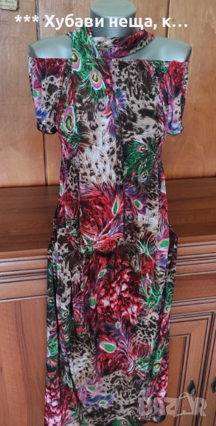 Чудесна рокля с принт паунови пера, лято, море, 15 лв