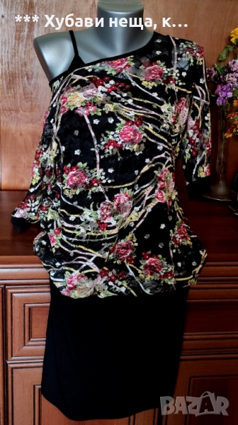 Рокля с черна основа и рози в горната част.. Цена 26 лв.
