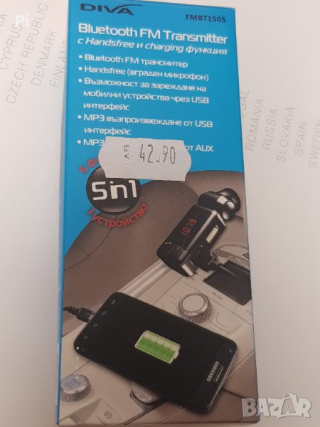 MP3 FM Трансмитер Diva FMBT1505, Bluetooth, AUX, USB