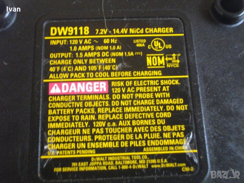 7.2V-14.4V-DeWalt DW9118-NiCd-Black Decker-Elu-ДеВалт-Зарядно-110 Волта-Отлично