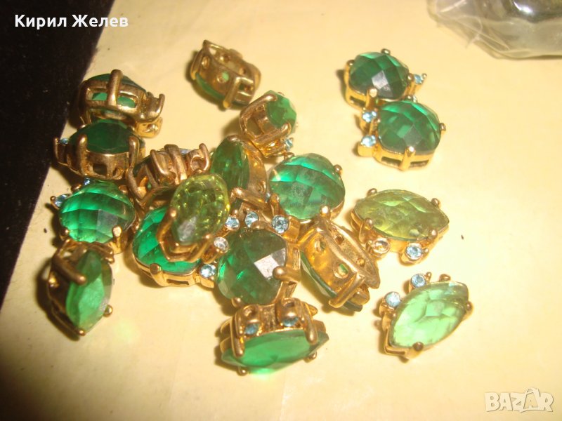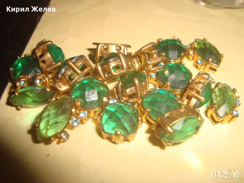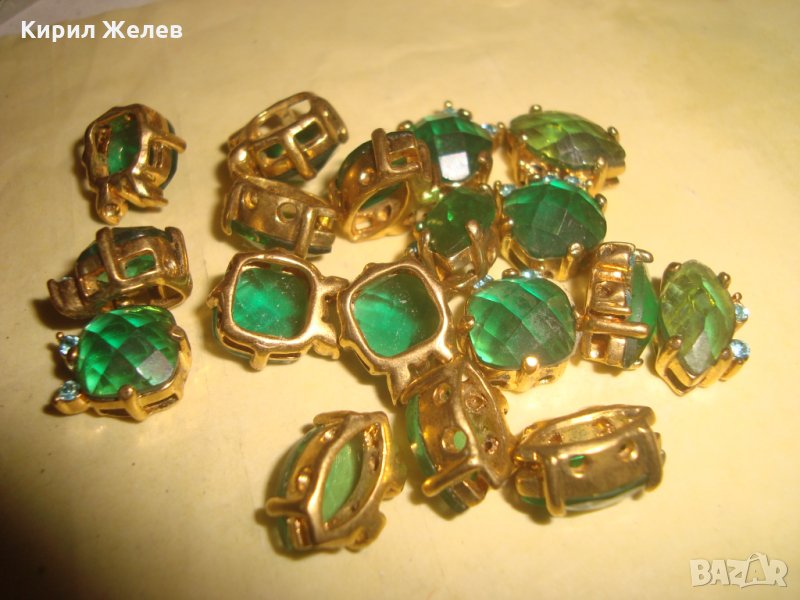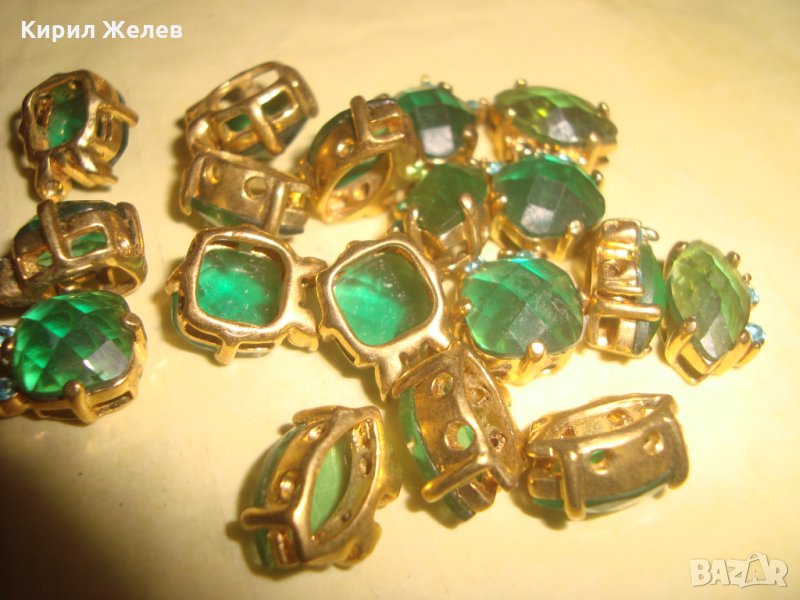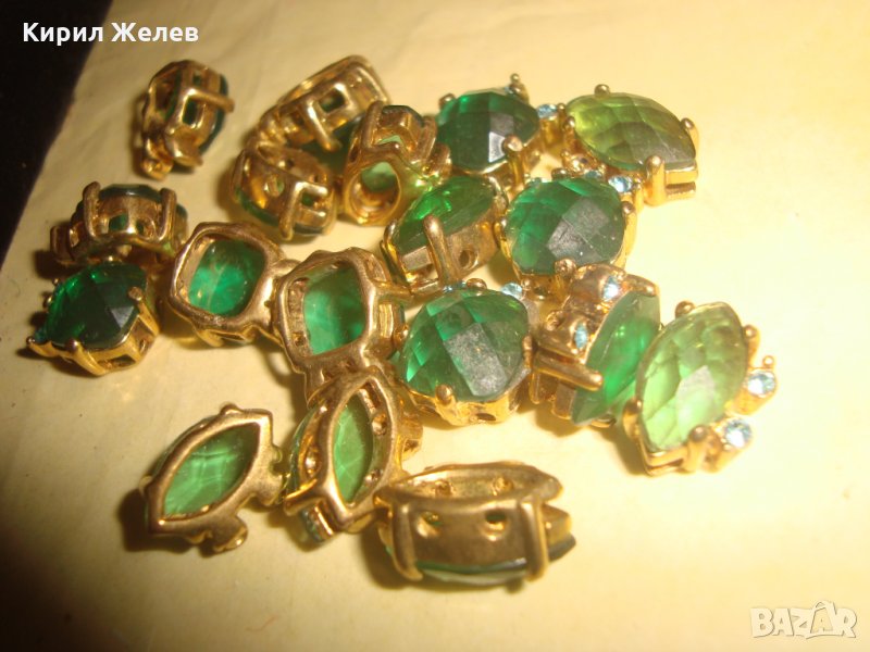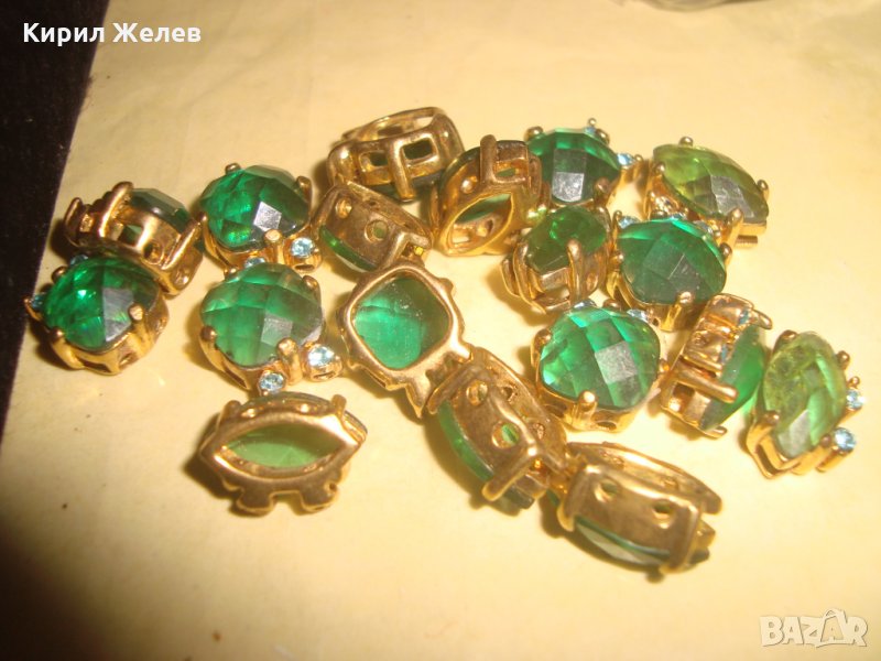СТАР СКЪПОЦЕНЕН ГЕРДАН със ЗЕЛЕН ФАСЕТИРАН ХРИЗОЛИТ БРОНЗ ПОЗЛАТА за НАНИЗ ХЕНД-МЕЙД 19485